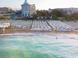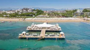 Blue Waters Club – Vaš trajnostni raj v SidejuPobegnite od vsakdanjega stresa v Blue Waters Club, vrhunski hotel s 5 zvezdicami, ki se nahaja neposredno na čudoviti peščeni plaži v bližini antičnega mesta Side. Hotel, ki je bil prenovljen leta 2022, združuje luksuzno udobje z globokim spoštovanjem do narave pod motom 'Feel Green. Live Blue'.Družine bodo navdušene nad obsežno ponudbo, ki vključuje vodni park s številnimi tobogani, profesionalno an...